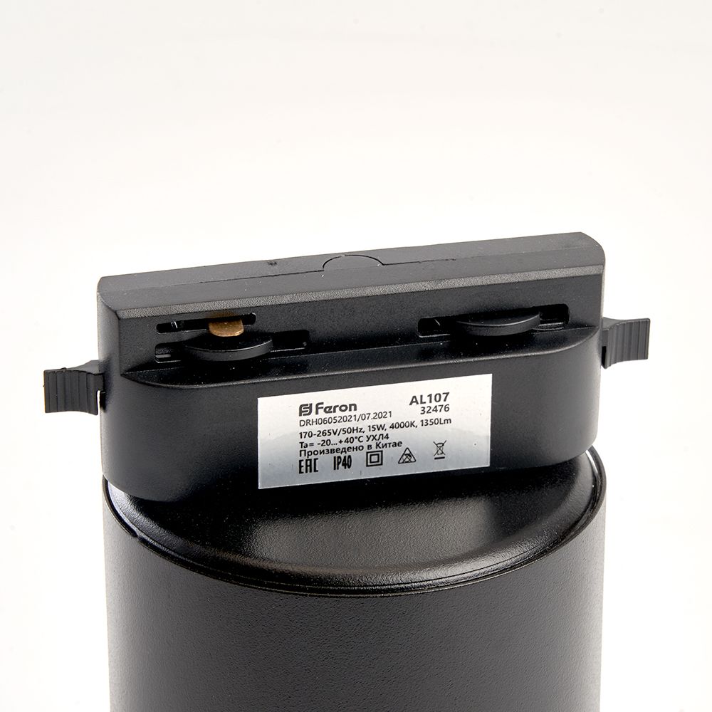 Св/д св-к Feron AL107 трековый 1ф на шинопровод 15W, 90 градусов, 4000К, черный в Орске
