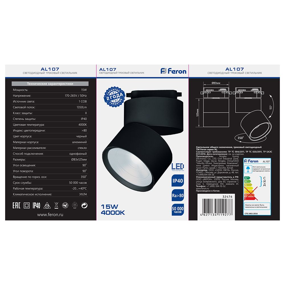Св/д св-к Feron AL107 трековый 1ф на шинопровод 15W, 90 градусов, 4000К, черный доступен в интернет‑магазине ВольтМаркет в Орске. Покупая у нас, вы получаете дополнительные преимущества: