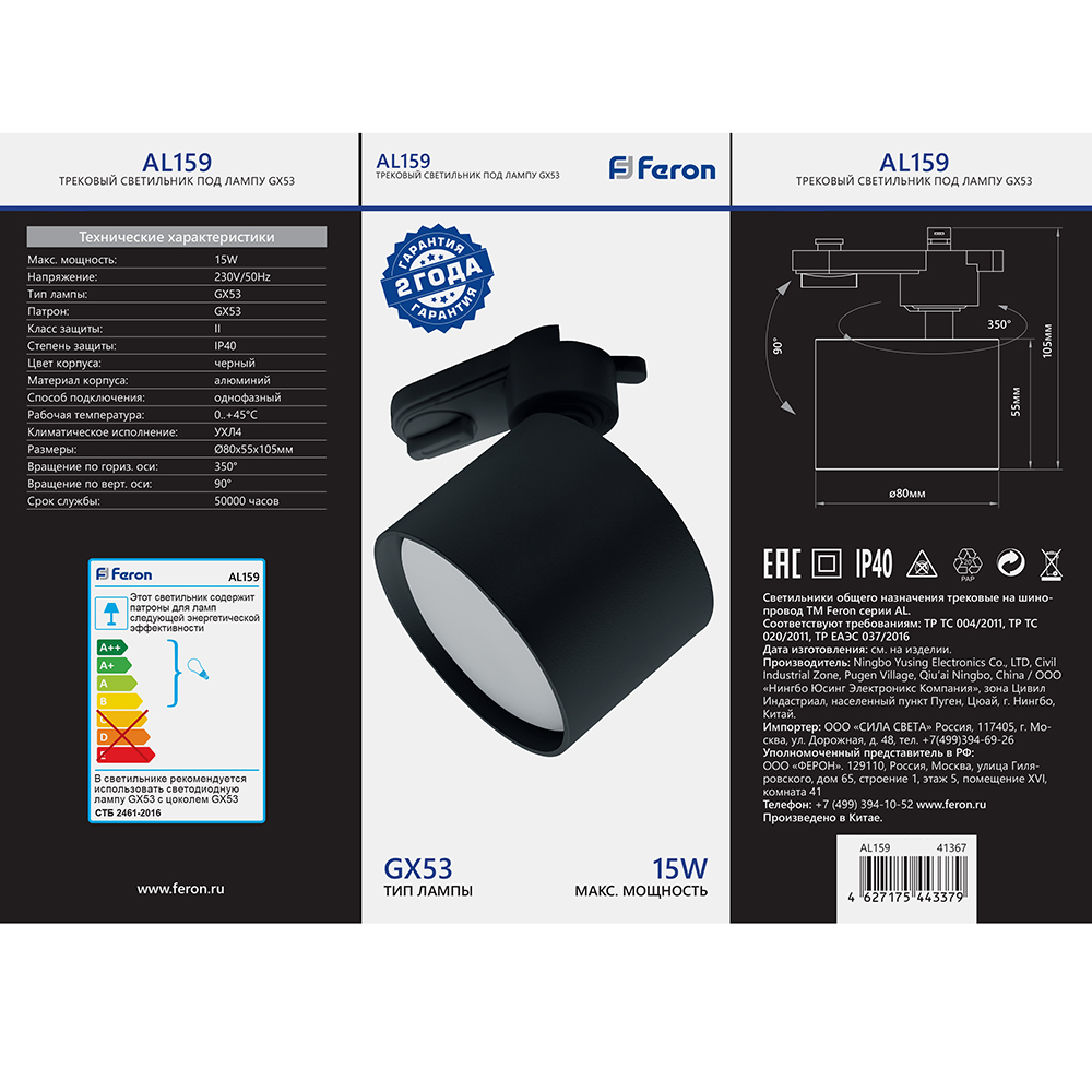 Светильник Feron AL159 трековый однофазный на шинопровод под лампу GX53, черный доступен в интернет‑магазине ВольтМаркет в Орске. Покупая у нас, вы получаете дополнительные преимущества: