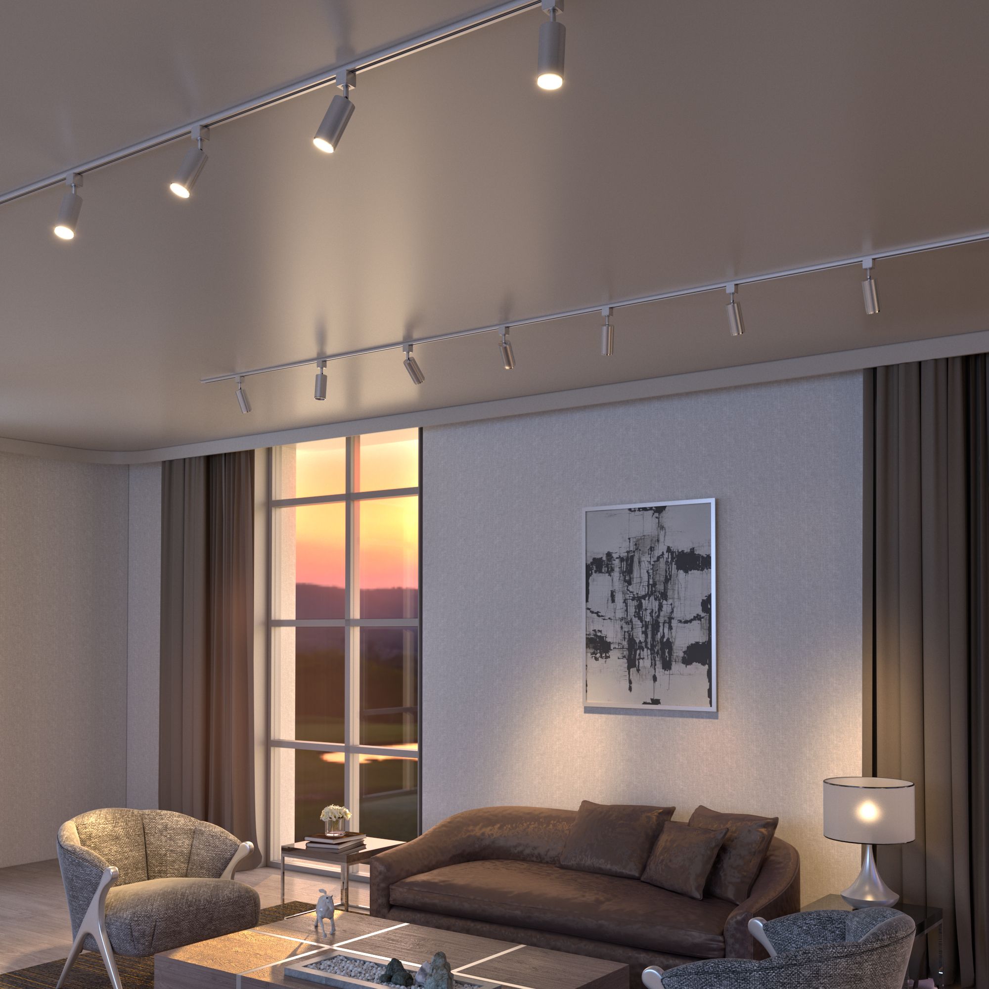 Трековые светильники обладают гибкостью в настройке направления света, что позволяет акцентировать внимание на отдельных зонах комнаты. Они легко монтируются и могут быть дополнены различными аксессуарами для расширения функционала.