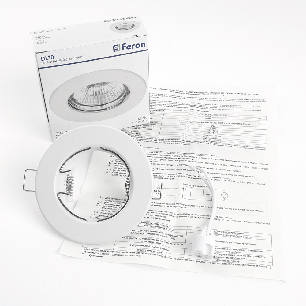 Светильник встраиваемый Feron DL10 потолочный MR16 G5.3 белый доступен в интернет‑магазине ВольтМаркет в Орске. Покупая у нас, вы получаете дополнительные преимущества: