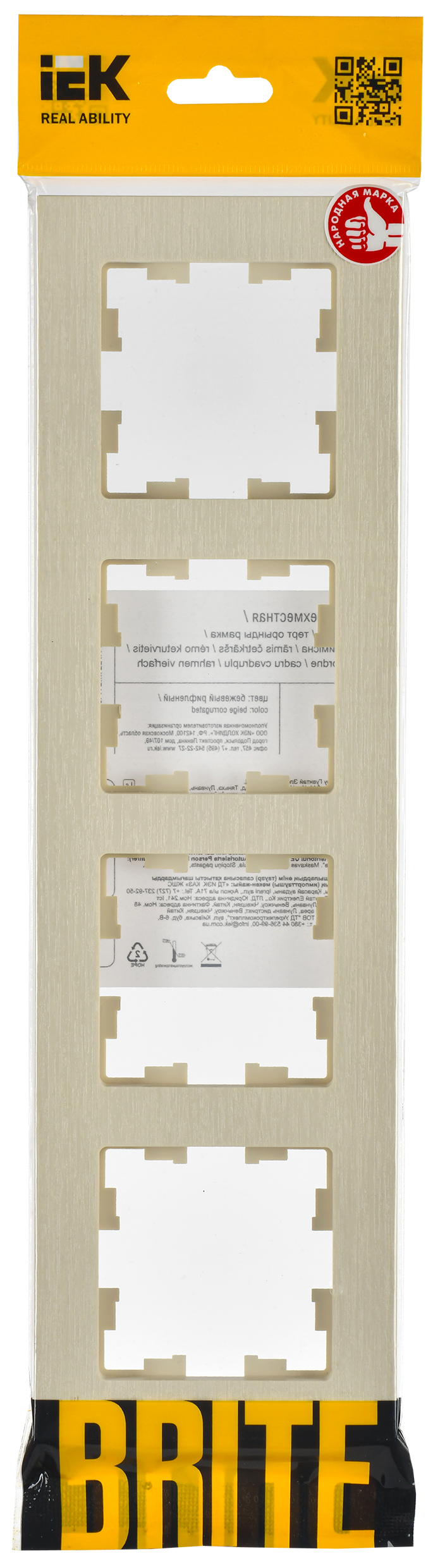 BRITE Рамка 4-мест. РУ-4-Бр беж. рифленый IEK в Орске