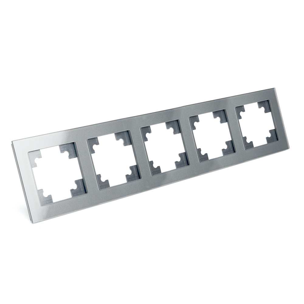 Рамка 5-местная, стекло, STEKKER, GFR00-7005-03, серия Катрин, серебро в Орске
