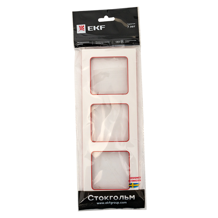 Стокгольм Рамка 3-местная белая с линией цвета красный EKF в Орске