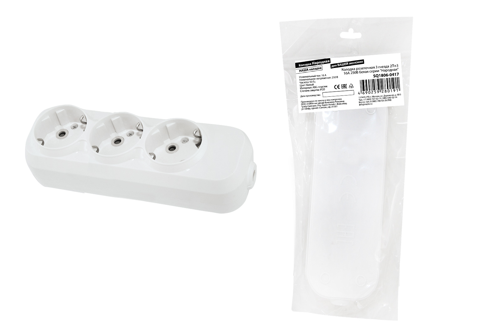 Колодка розеточная 3 гнезда 2П+3 16А 250В белая серии "Народная" доступен в интернет‑магазине ВольтМаркет в Орске. Покупая у нас, вы получаете дополнительные преимущества: