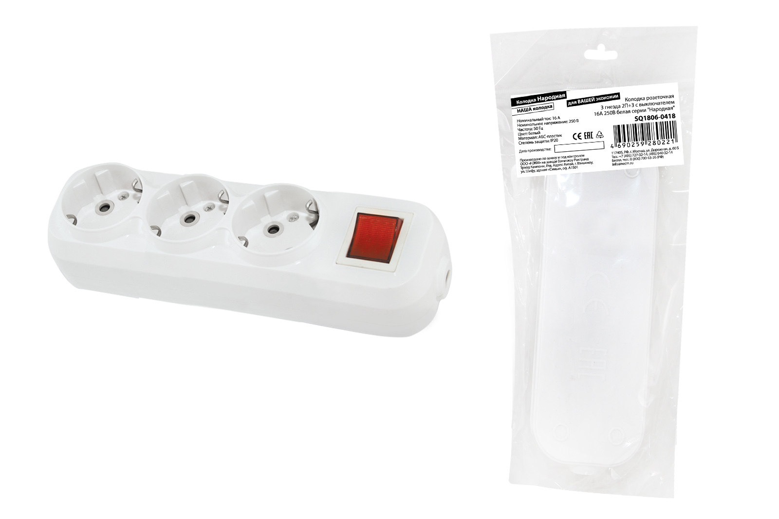 Колодка розеточная 3 гнезда 2П+3 c выключателем 16А 250В белая серии "Народная" доступен в интернет‑магазине ВольтМаркет в Орске. Покупая у нас, вы получаете дополнительные преимущества: