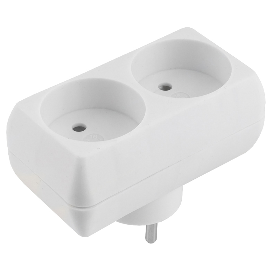 Разветвитель (тройник) 2 роз. 16А, плоский, белый, 3.5кВт General в Орске