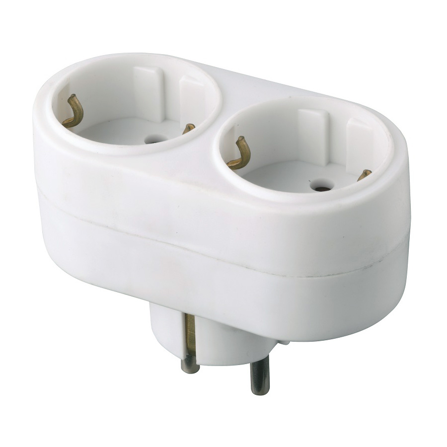 Разветвитель (тройник) 2 роз. 16А, плоский, белый,земля, 3.5кВт General в Орске