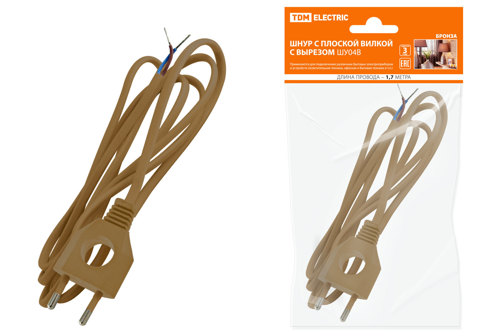Шнур с плоской вилкой с вырезом ШУ04 ШВВП 2х0,75мм2 1,7 м. бронза TDM доступен в интернет‑магазине ВольтМаркет в Орске. Покупая у нас, вы получаете дополнительные преимущества: