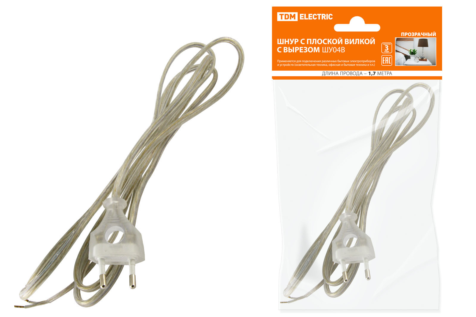 Шнур с плоской вилкой с вырезом ШУ04 ШВВП 2х0,75мм2 1,7 м. прозрачный TDM доступен в интернет‑магазине ВольтМаркет в Орске. Покупая у нас, вы получаете дополнительные преимущества: