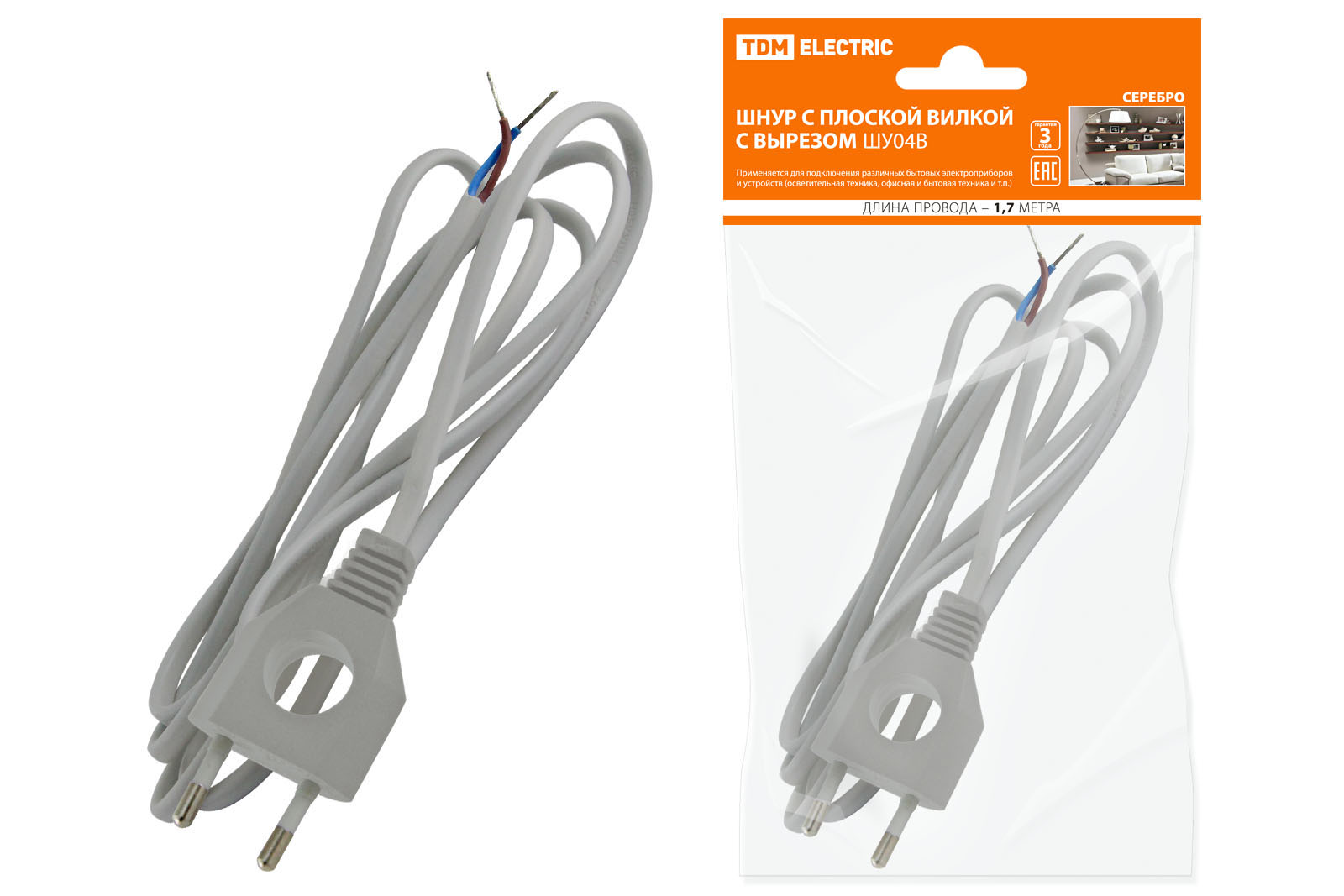 Шнур с плоской вилкой с вырезом ШУ04 ШВВП 2х0,75мм2 1,7 м. серебр. металлик TDM доступен в интернет‑магазине ВольтМаркет в Орске. Покупая у нас, вы получаете дополнительные преимущества: