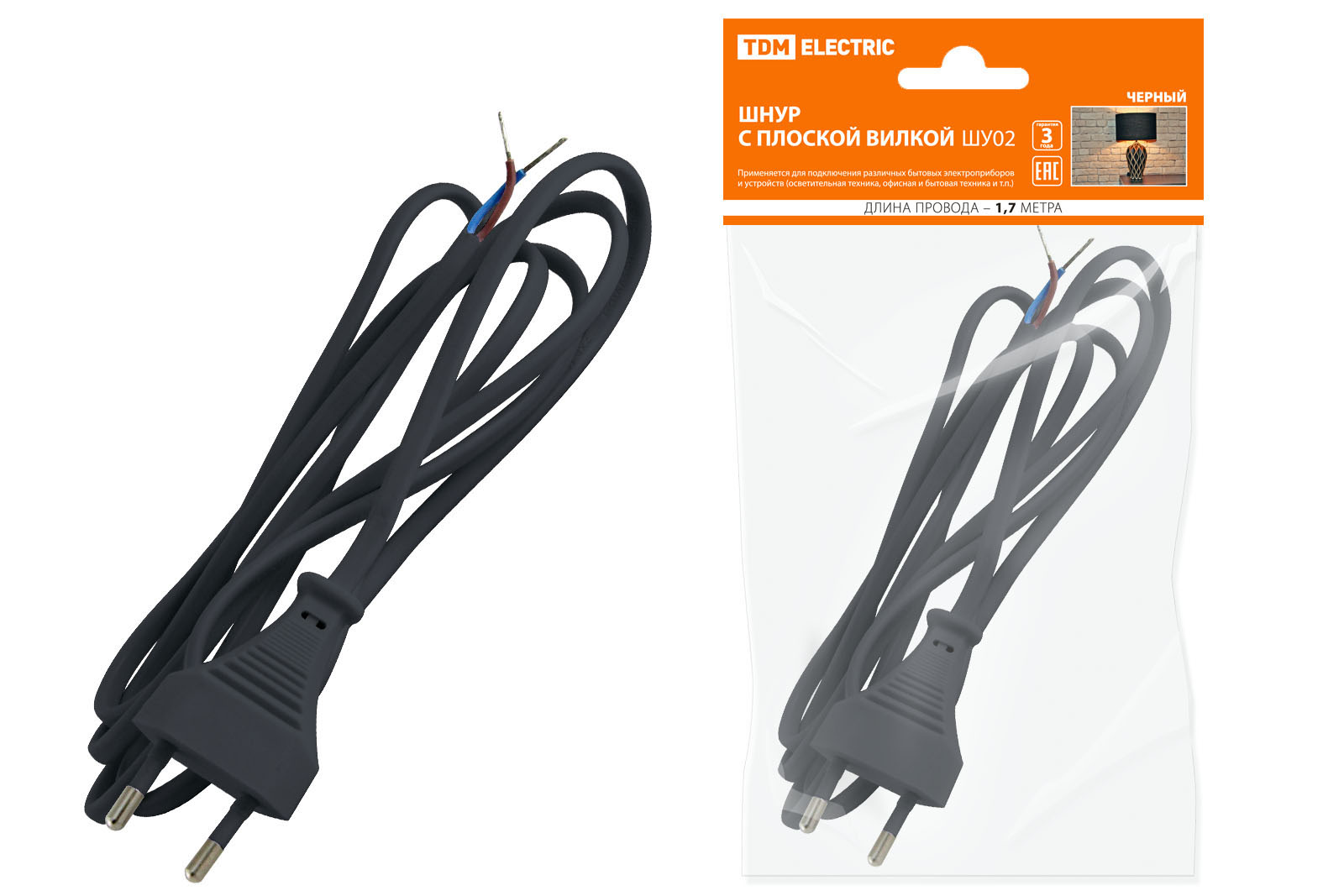 Шнур с плоской вилкой ШУ02 ШВВП 2х0,75мм2 1,7 м. черный TDM доступен в интернет‑магазине ВольтМаркет в Орске. Покупая у нас, вы получаете дополнительные преимущества: