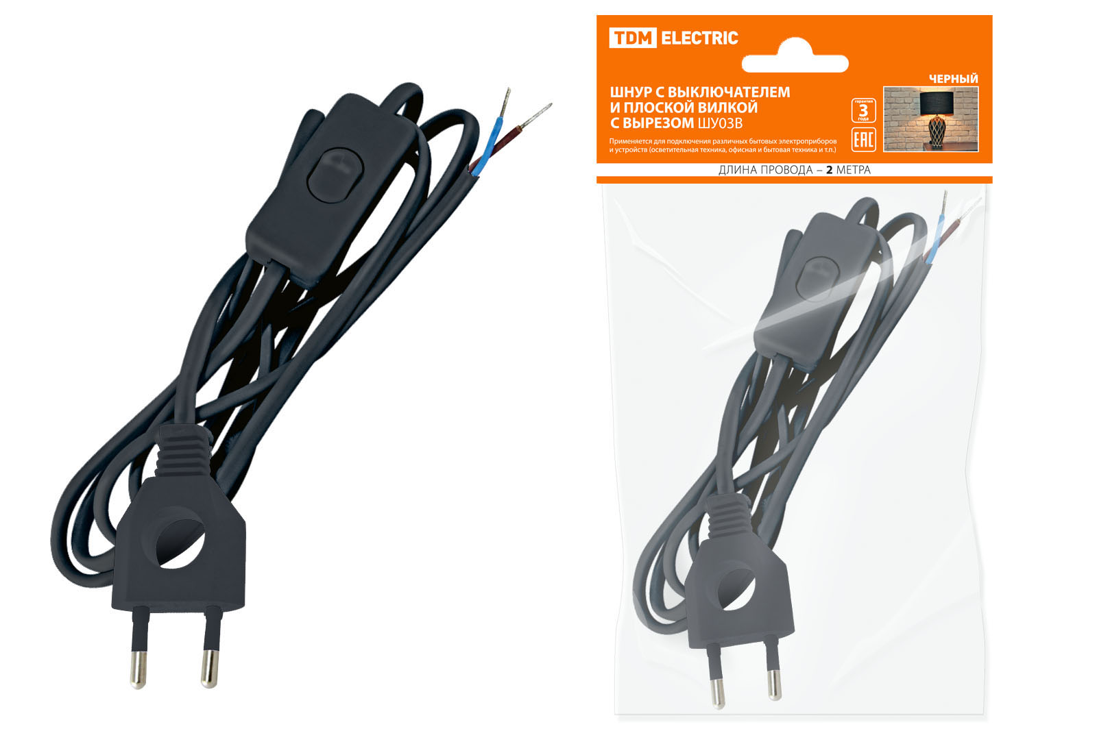 Шнур с выключателем и плоской вилкой с вырезом ШУ03В ШВВП 2х0,75мм2 2 м. черный TDM доступен в интернет‑магазине ВольтМаркет в Орске. Покупая у нас, вы получаете дополнительные преимущества: