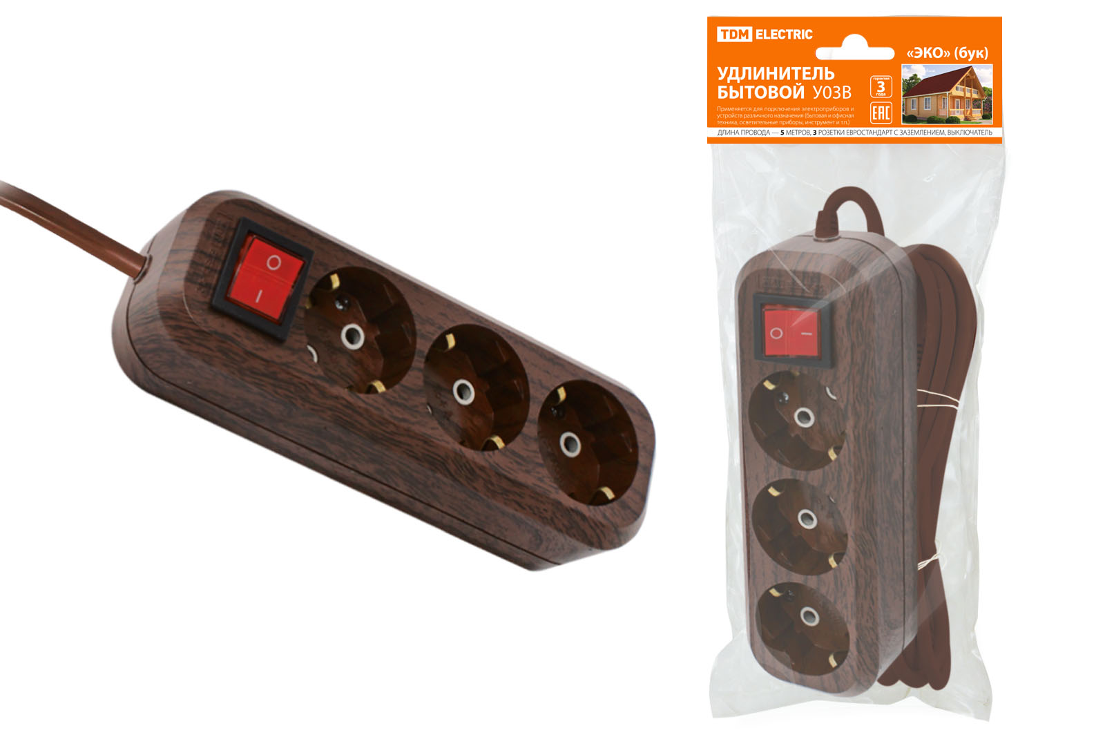 Удлинитель бытовой У03В выключатель, 3 гнезда, 5метров,2П+3, ПВС 3х1мм2 "Эко" (бук) 16А/250В TDM доступен в интернет‑магазине ВольтМаркет в Орске. Покупая у нас, вы получаете дополнительные преимущества:
