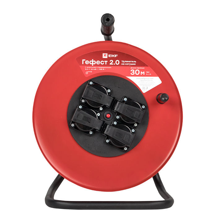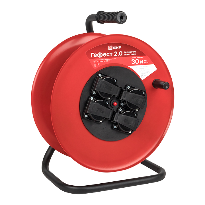 Удлинитель на катушке "Гефест 2,0" 4 гнезда 30м с заземлением и предохранителем ПВС 3*1,5 16А/3,5кВт IP44 PROxima EKF доступен в интернет‑магазине ВольтМаркет в Орске. Покупая у нас, вы получаете дополнительные преимущества: