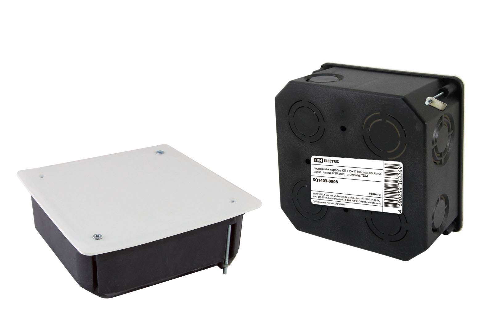 Распаячная коробка СП 115х115х45мм, крышка, метал. лапки, IP20, инд. штрихкод, TDM в Орске