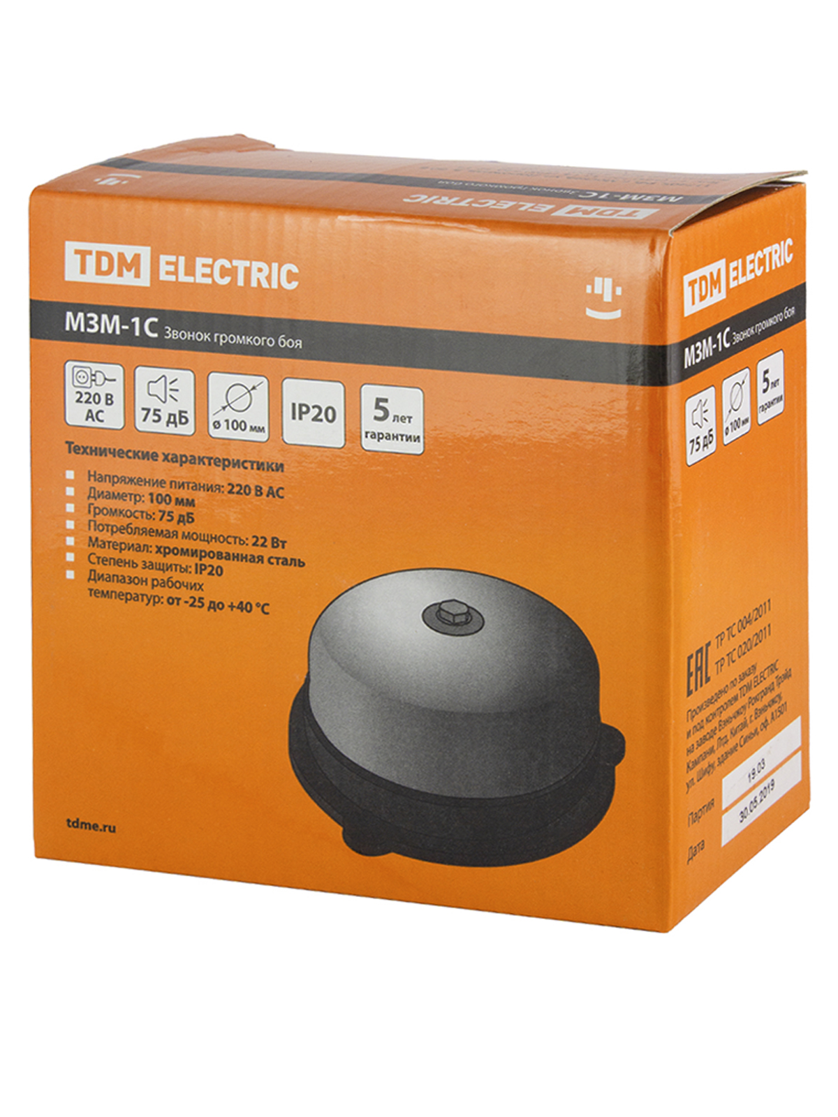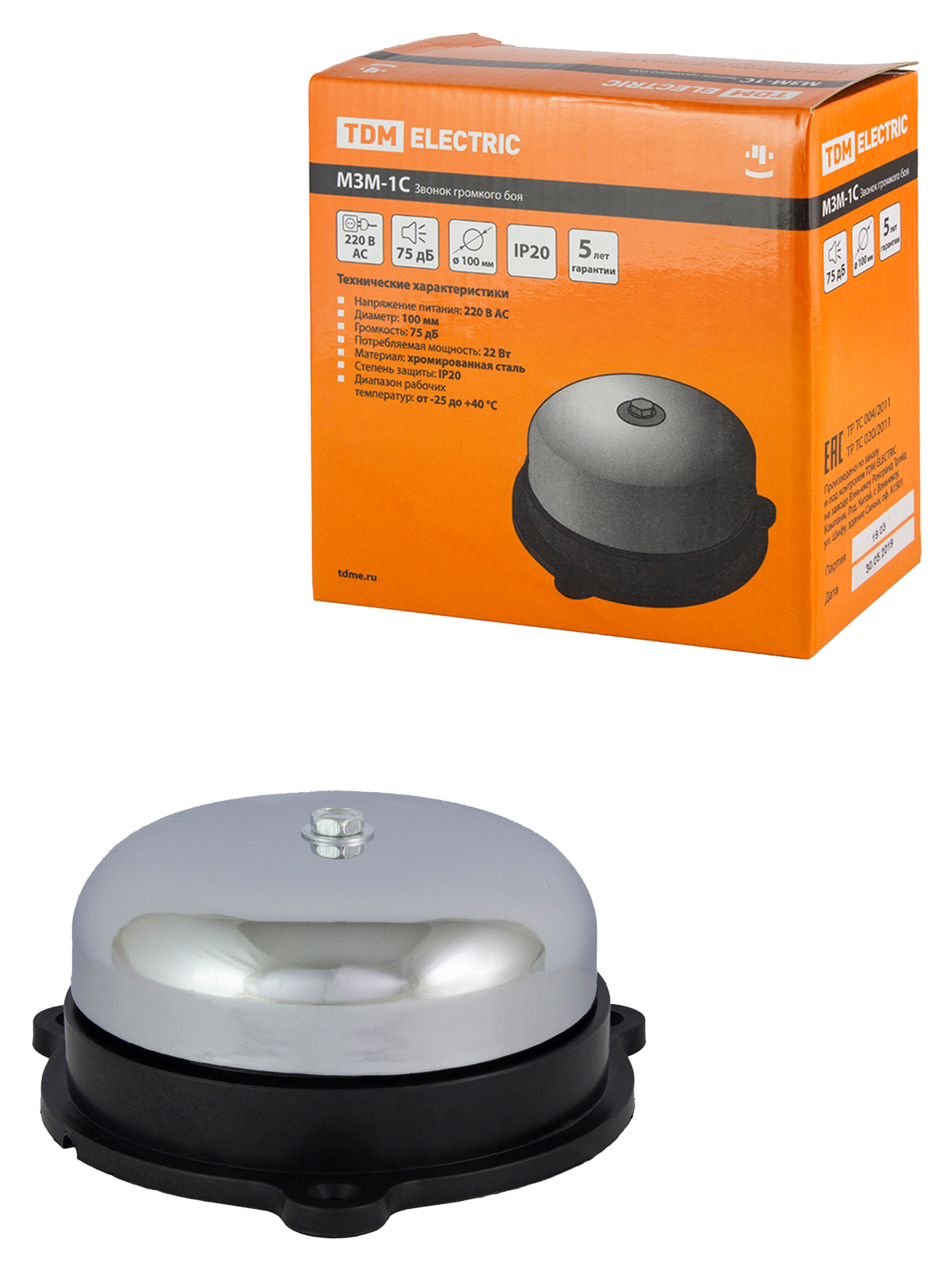 Звонок громкого боя МЗМ-1С-100мм 75дБ 220В TDM доступен в интернет‑магазине ВольтМаркет в Орске. Покупая у нас, вы получаете дополнительные преимущества: