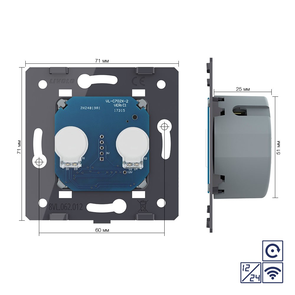 Двухклавишная сенсорная кнопка 12/24В с функцией радиоуправления (механизм) Livolo доступен в интернет‑магазине ВольтМаркет в Орске. Покупая у нас, вы получаете дополнительные преимущества: