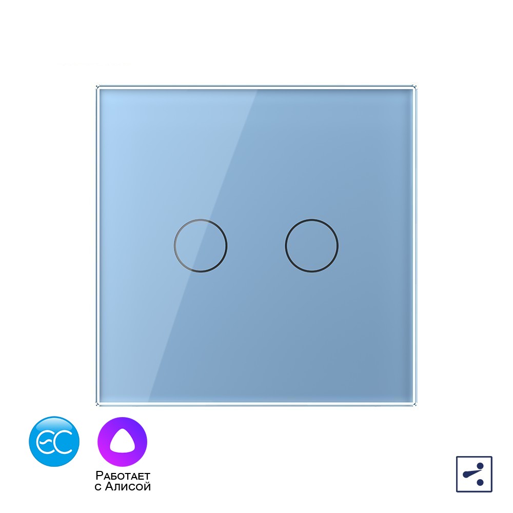 Двухклавишный проходной умный сенсорный выключатель EC, 1 пост, цвет синий Livolo в Орске