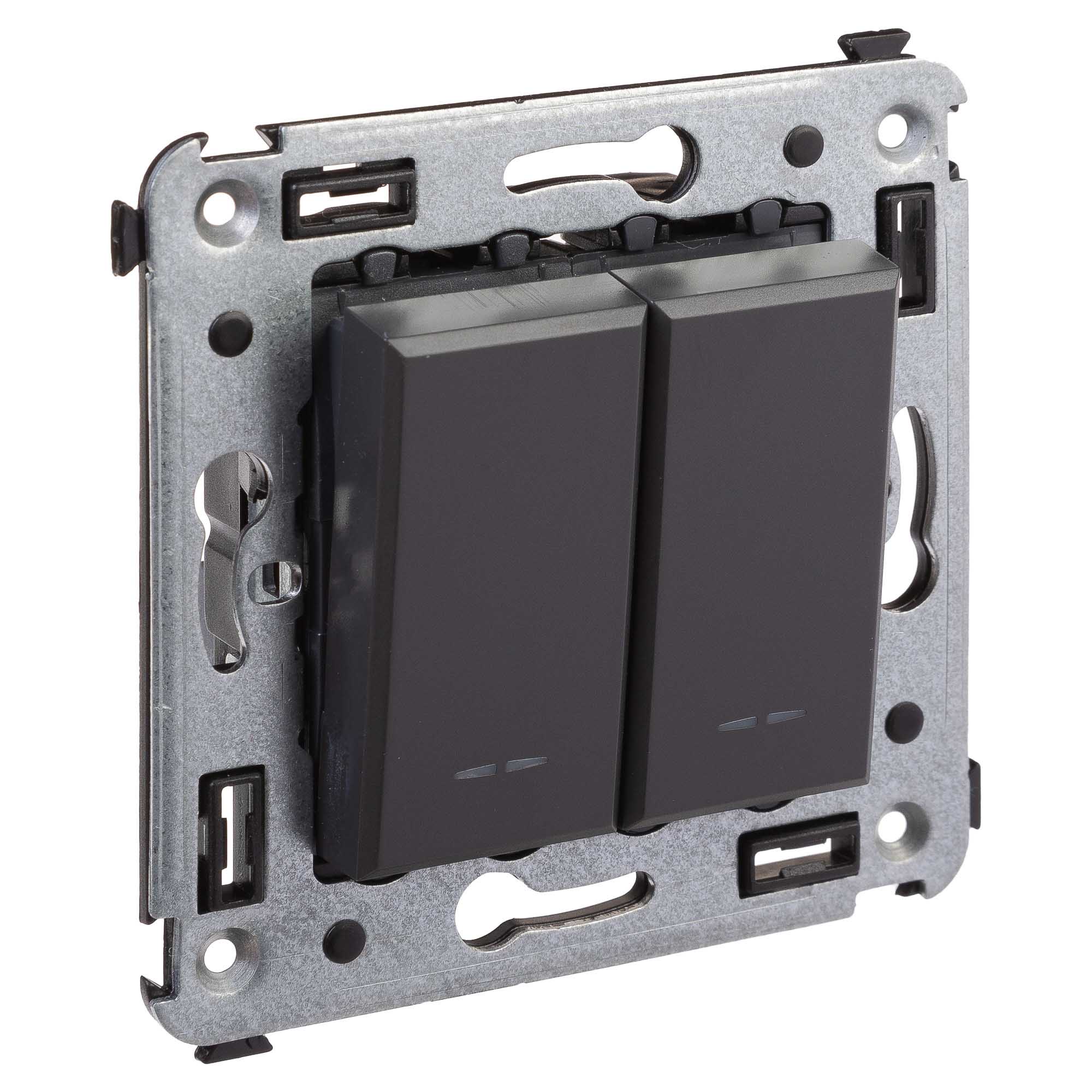 Переключатель двухклавишный в стену, "Avanti", "Черный матовый" DKC в Орске