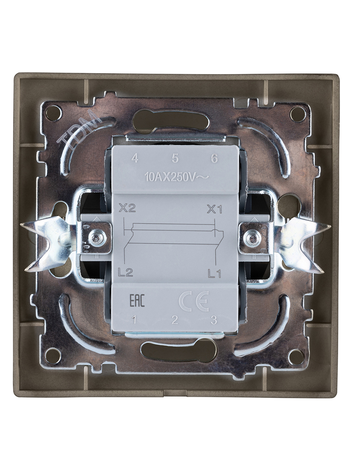 Перекрестный выключатель 1-кл. 10А шоколад "Лама" TDM в Орске