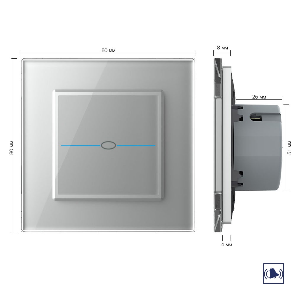 Сенсорный дверной звонок Quadro 1 клавиша 1 модуль Серый Livolo в Орске