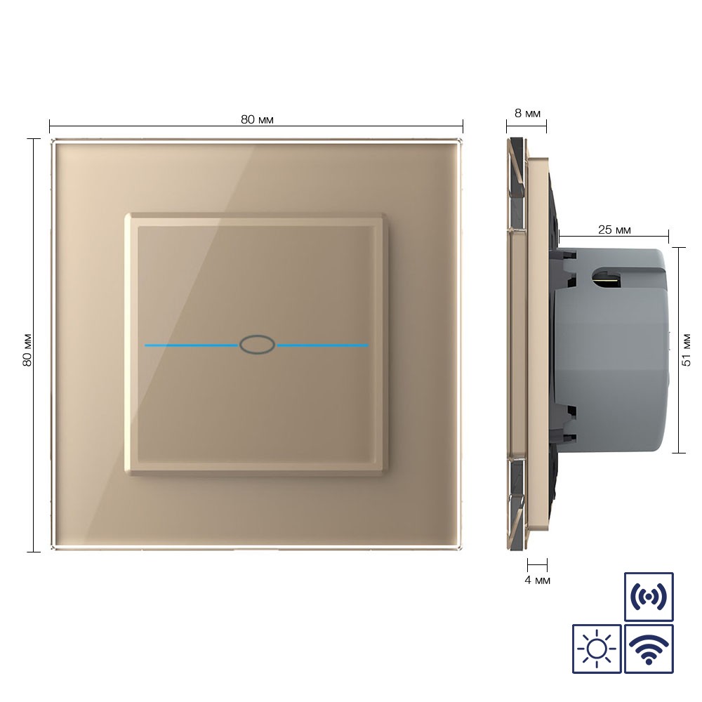 Сенсорный импульсный радиоуправляемый выключатель Quadro сухой контакт 1 клавиша Золотой Livolo доступен в интернет‑магазине ВольтМаркет в Орске. Покупая у нас, вы получаете дополнительные преимущества: