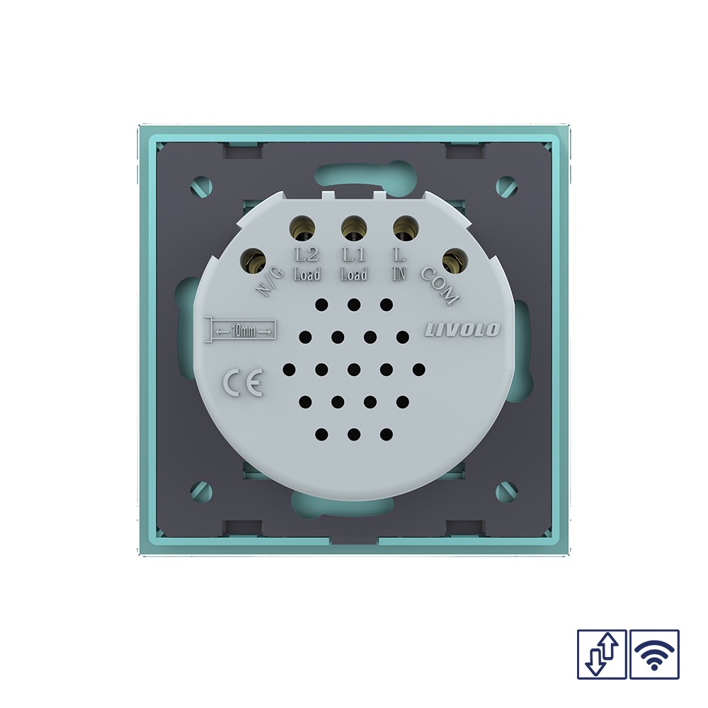 Сенсорный радиоуправляемый выключатель для жалюзи 2 клавиши 1 модуль Зеленый Livolo в Орске