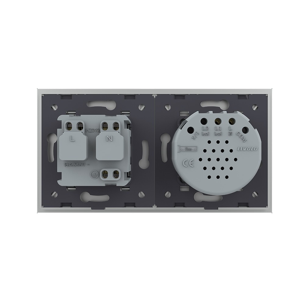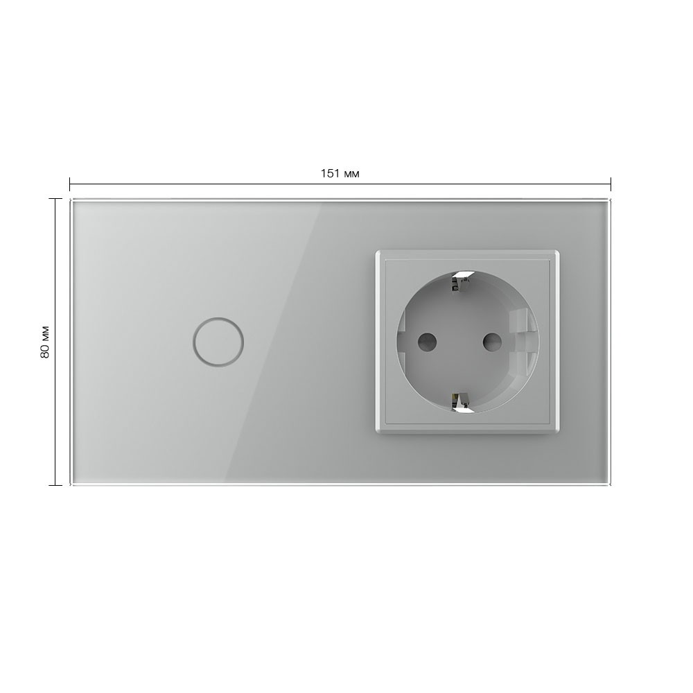 Сенсорный выключатель комбинированный на 1 линию 1 розетка 2 модуля Серый Livolo в Орске