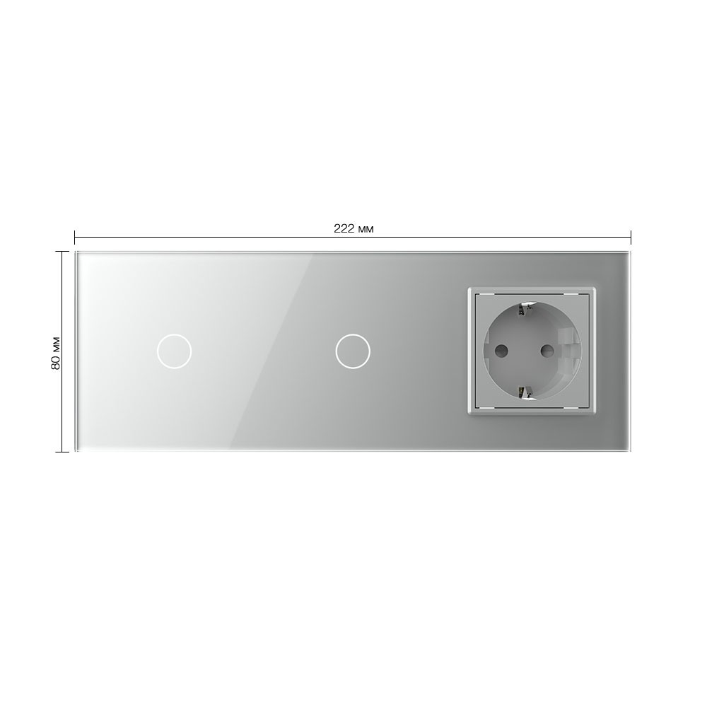 Сенсорный выключатель комбинированный на 2 линии 1 розетка 3 модуля Серый Livolo в Орске
