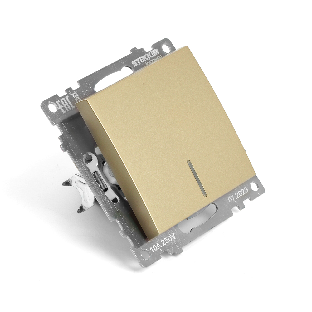 Выключатель 1-клавишный c индикатором (механизм), STEKKER, GLS10-7101-08, 250В, 10А, серия Катрин, золото в Орске