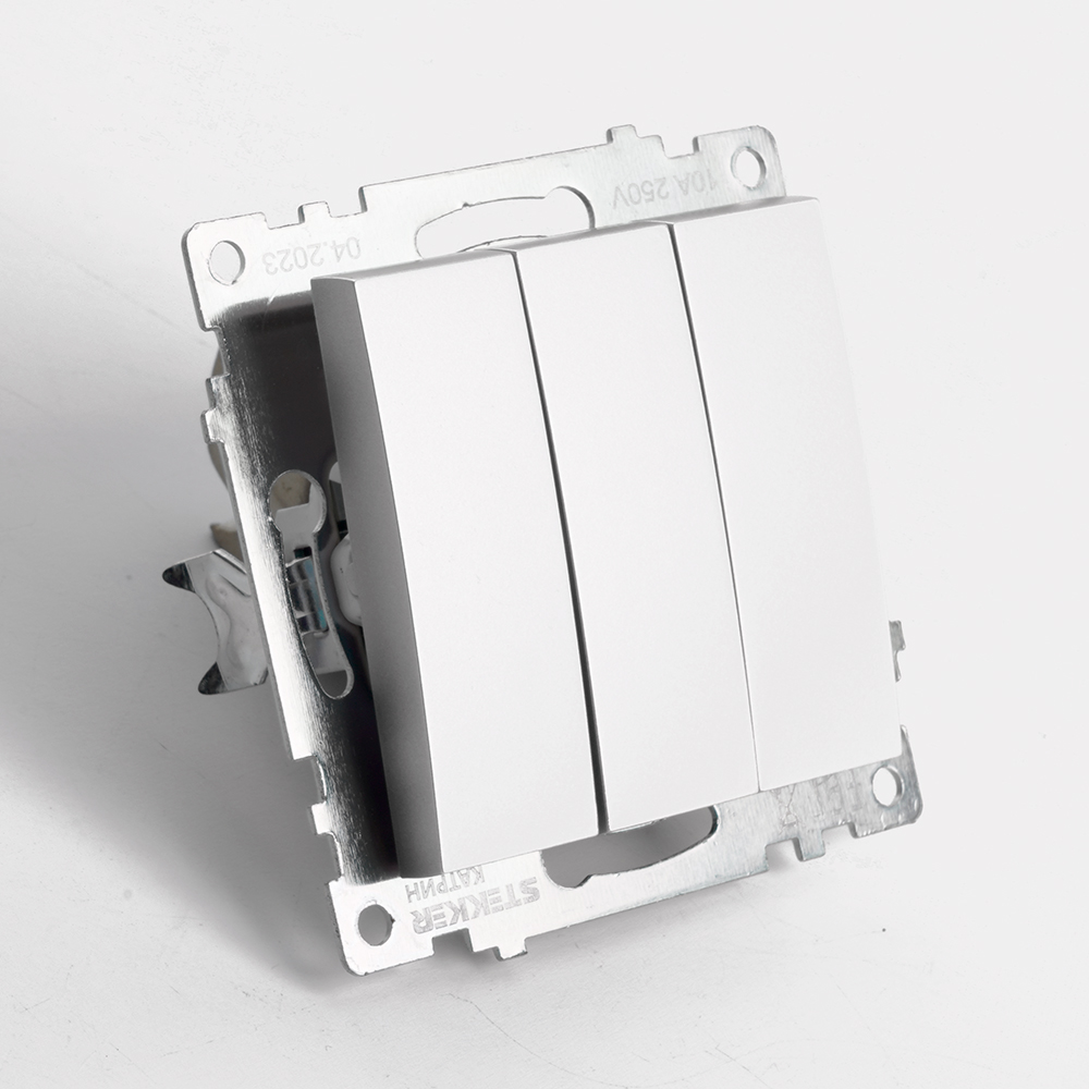 Выключатель 3-клавишный (механизм), STEKKER GLS10-7108-03, 250V, 10А, серия Катрин, серебро доступен в интернет‑магазине ВольтМаркет в Орске. Покупая у нас, вы получаете дополнительные преимущества: