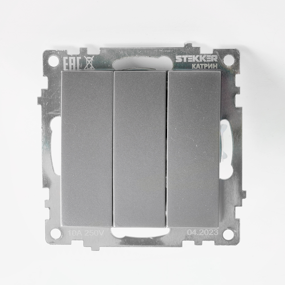 Выключатель 3-клавишный (механизм), STEKKER GLS10-7108-03, 250V, 10А, серия Катрин, серебро в Орске