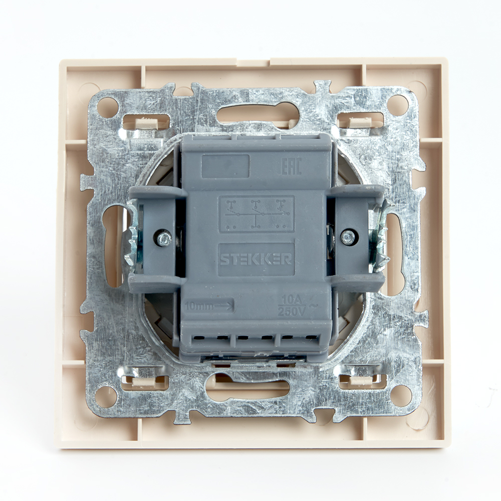 Выключатель 3-клавишный STEKKER PSW10-9007-02, 250В, 10А, серия Эрна, слоновая кость в Орске