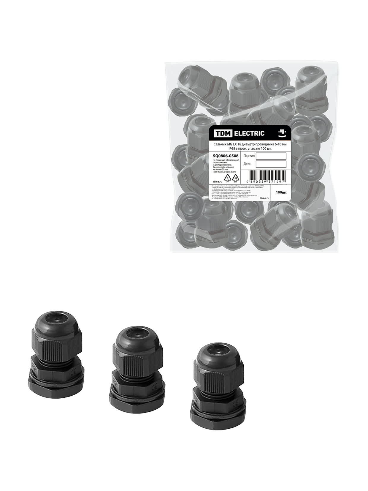 Сальник MG LX 16 диаметр проводника 6-10 мм IP68 в пром. упак. по 100 шт. в Орске