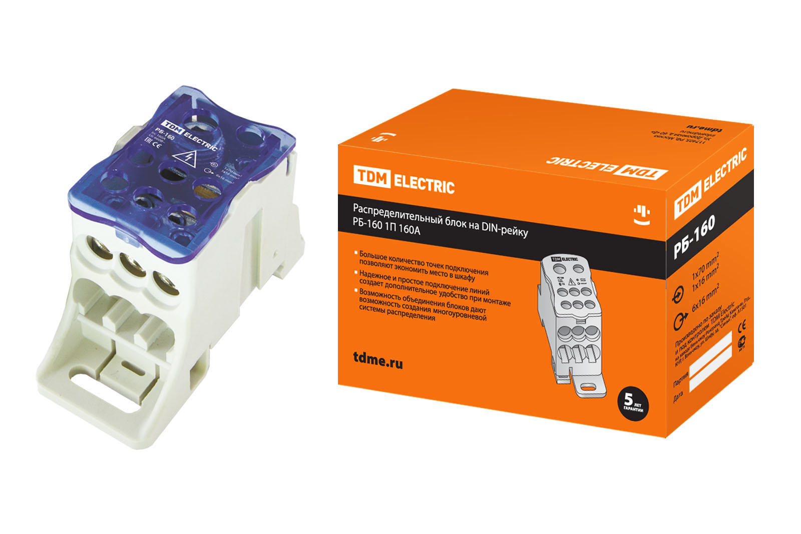 Распределительный блок на DIN-рейку РБ-160 1П 160А (1х70+1x16/6x16) TDM доступен в интернет‑магазине ВольтМаркет в Орске. Покупая у нас, вы получаете дополнительные преимущества:
