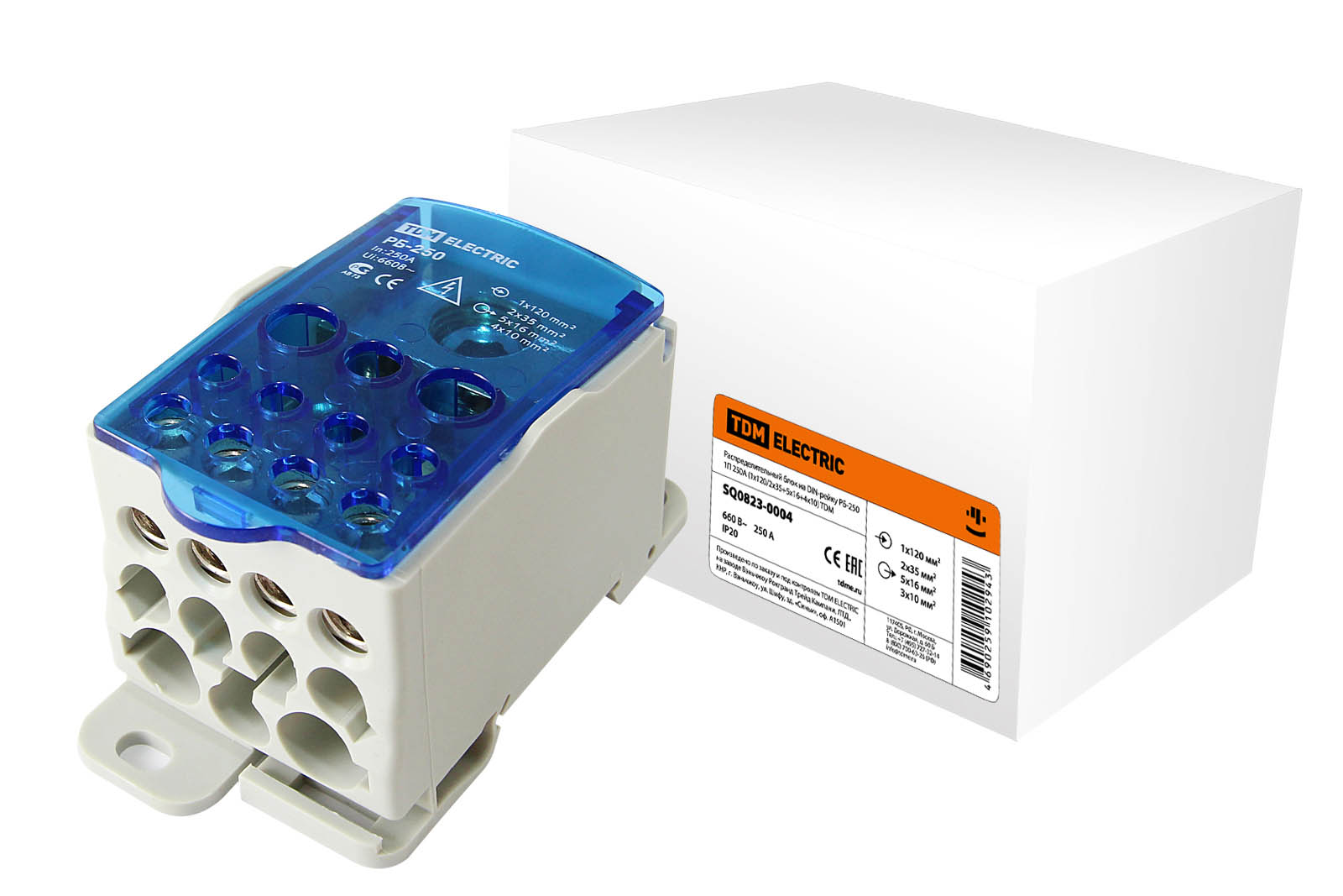 Распределительный блок на DIN-рейку РБ-250 1П 250А (1х120/2x35+5x16+4x10) TDM в Орске