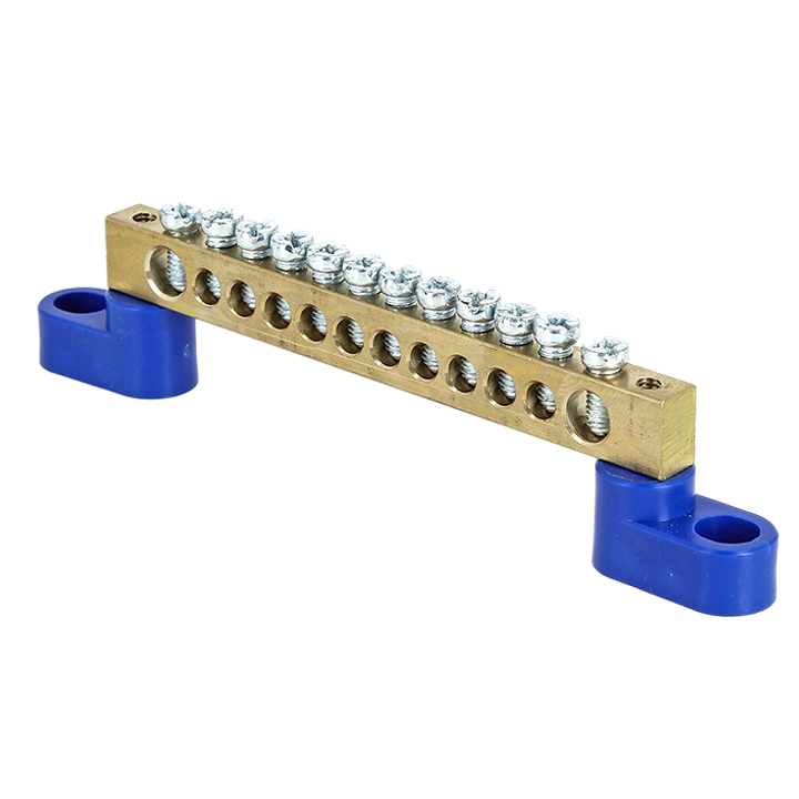 Шина "0" N (6х9мм) 12 отверстий латунь 2 синих угловых изолятора PROxima EKF в Орске