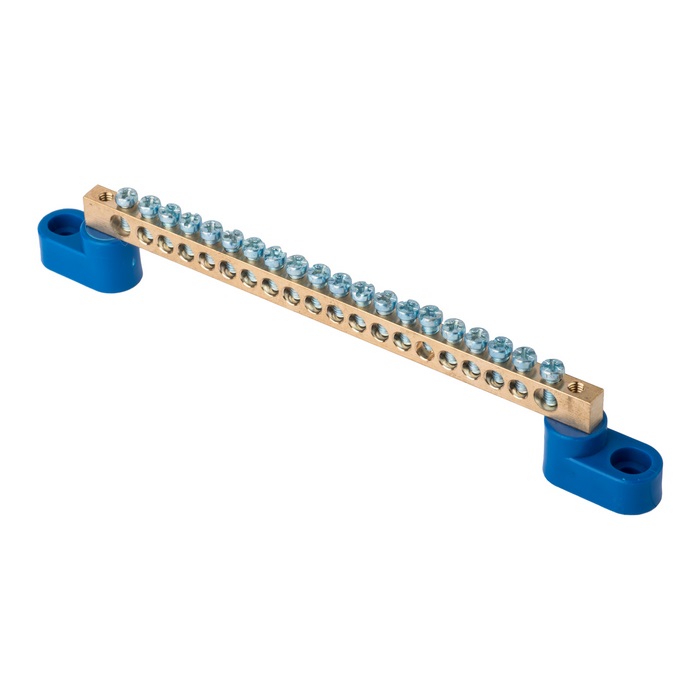 Шина "0" N (6x9мм) 20 отв, латунь 2 синих угловых изолятора розн, стикер EKF в Орске