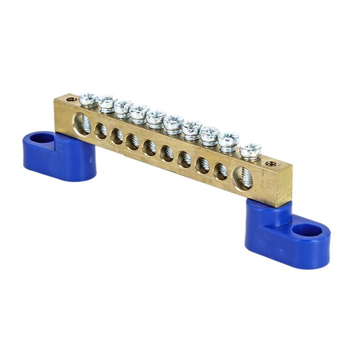 Шина "0" N (8х12мм) 10 отверстий латунь 2 синих угловых изолятора PROxima EKF в Орске