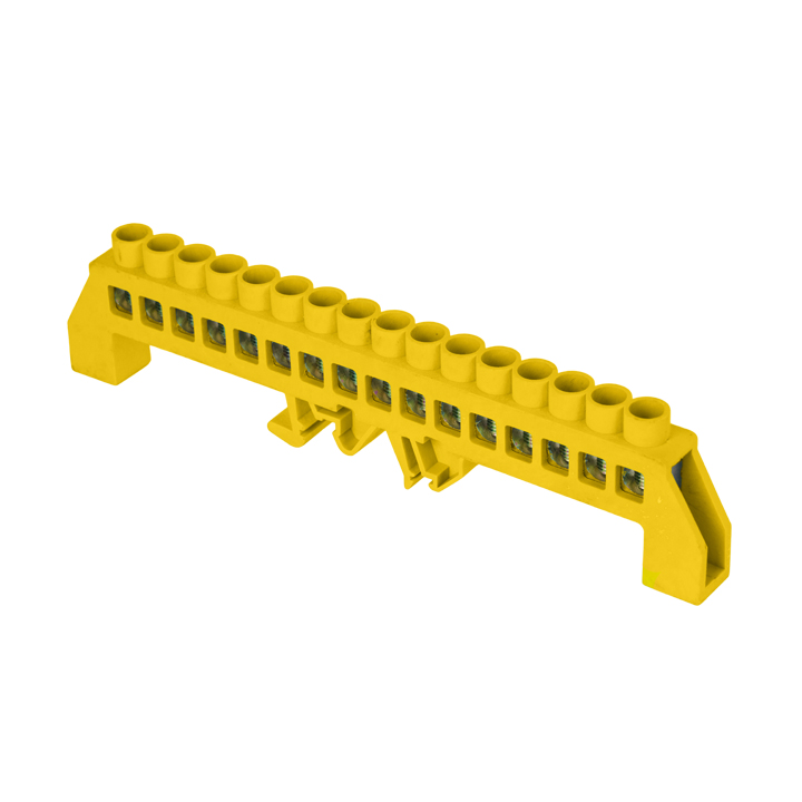 Шина "0" РЕ (8х12мм) 16 отверстий латунь желтый нейлоновый корпус комбинированный PROxima EKF в Орске