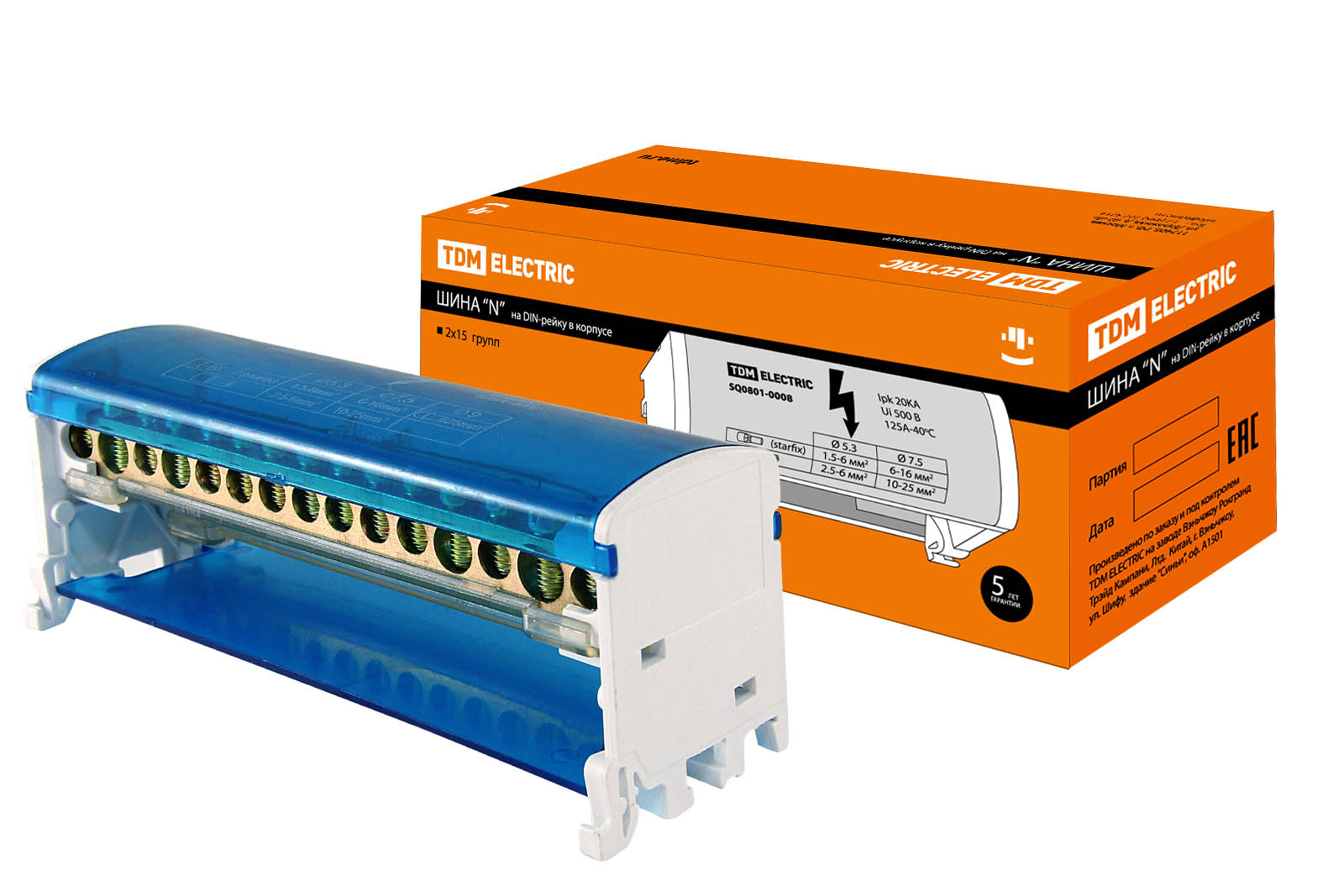 Шина "N" нулевая на DIN-рейку в корпусе 2х15групп TDM в Орске