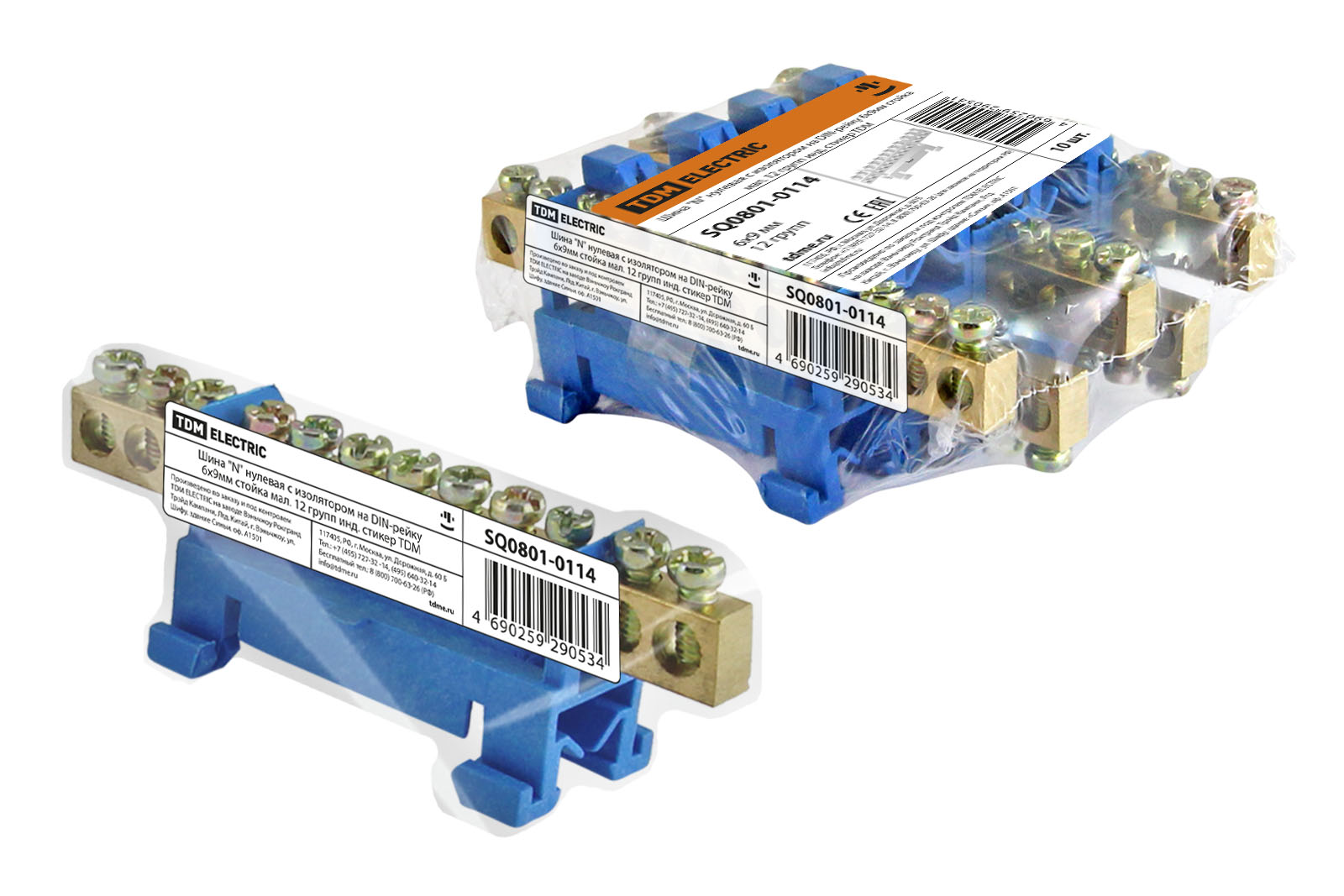 Шина "N" нулевая с изолятором на DIN-рейку 6x9мм стойка мал. 12 групп инд. стикер TDM в Орске