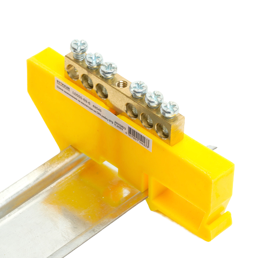 Шина "PE" на изоляторе 6*9 на DIN-рейку 6 выводов, желтый, LD555-69-6 STEKKER в Орске