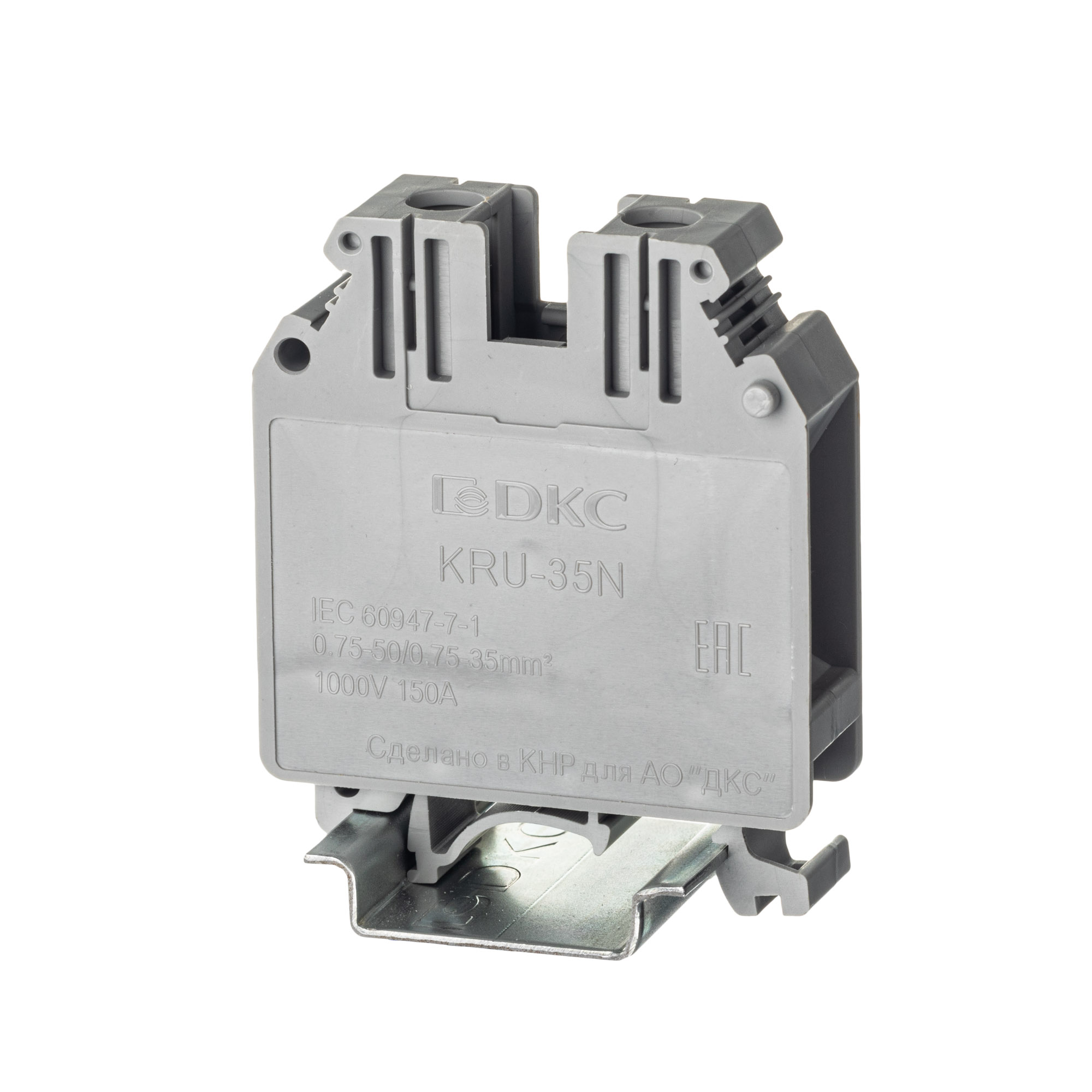 Клемма проходная, винтовой зажим, 2 точки подключения, 35 кв.мм, серая DKC в Орске