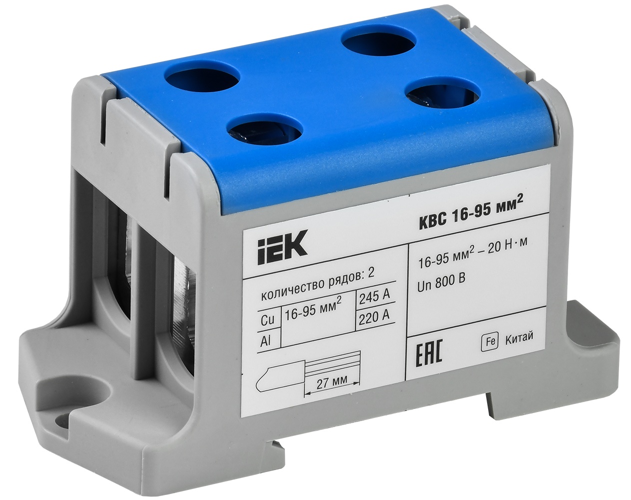 Клемма вводная силовая КВС 16-95мм2 2х-рядная синяя IEK в Орске