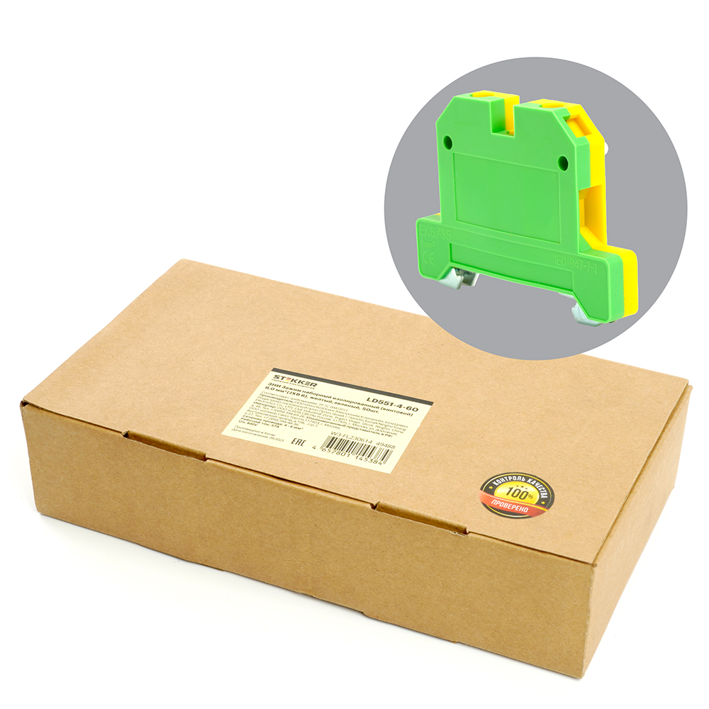 LD551-4-60 ЗНИ Зажим наборный изолированный (винтовой) 6,0 мм² (JXB 6), желтый,зеленый STEKKER в Орске