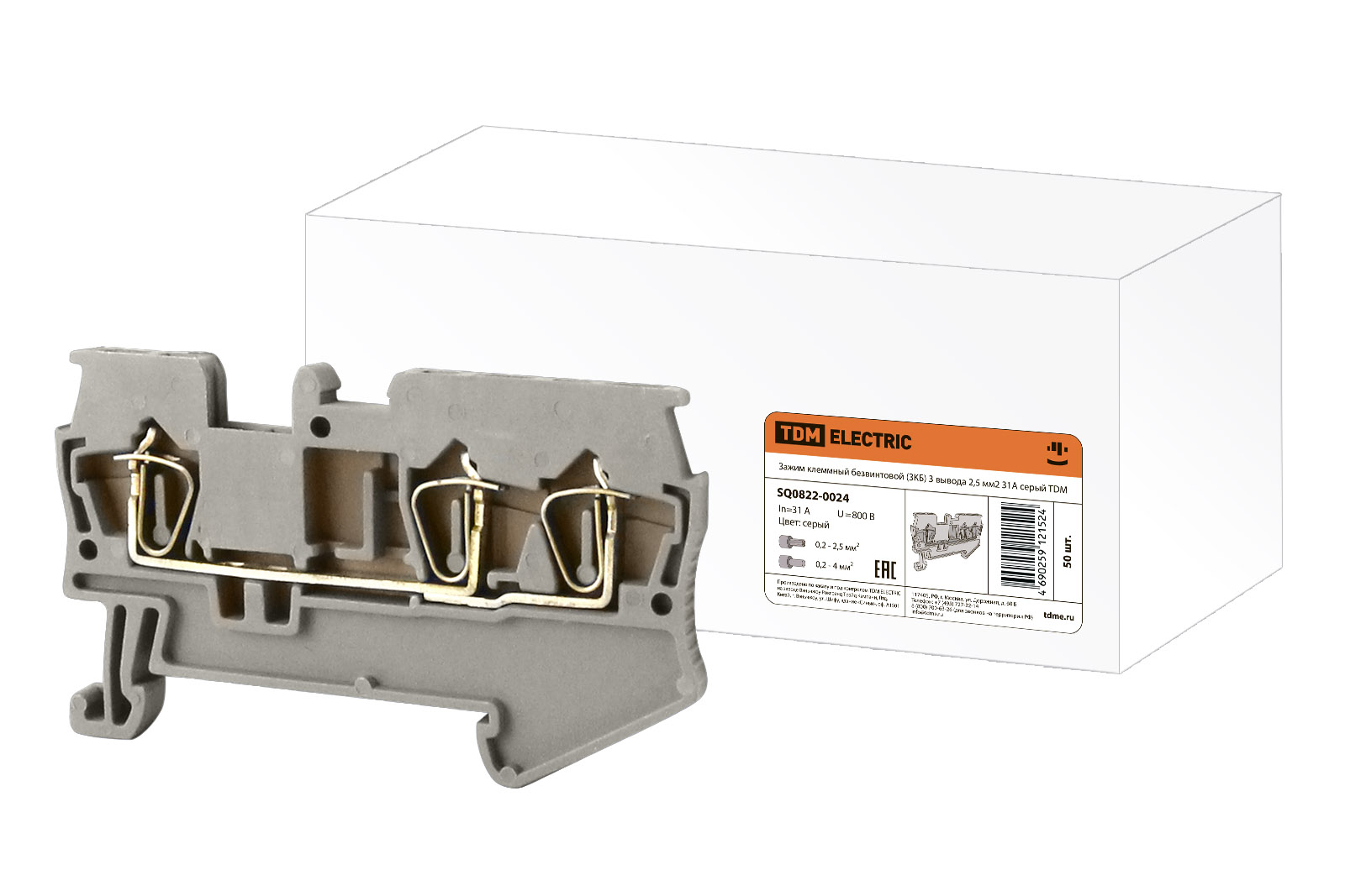 Зажим клеммный безвинтовой (ЗКБ) 3 вывода 2,5 мм2 31А серый TDM доступен в интернет‑магазине ВольтМаркет в Орске. Покупая у нас, вы получаете дополнительные преимущества:
