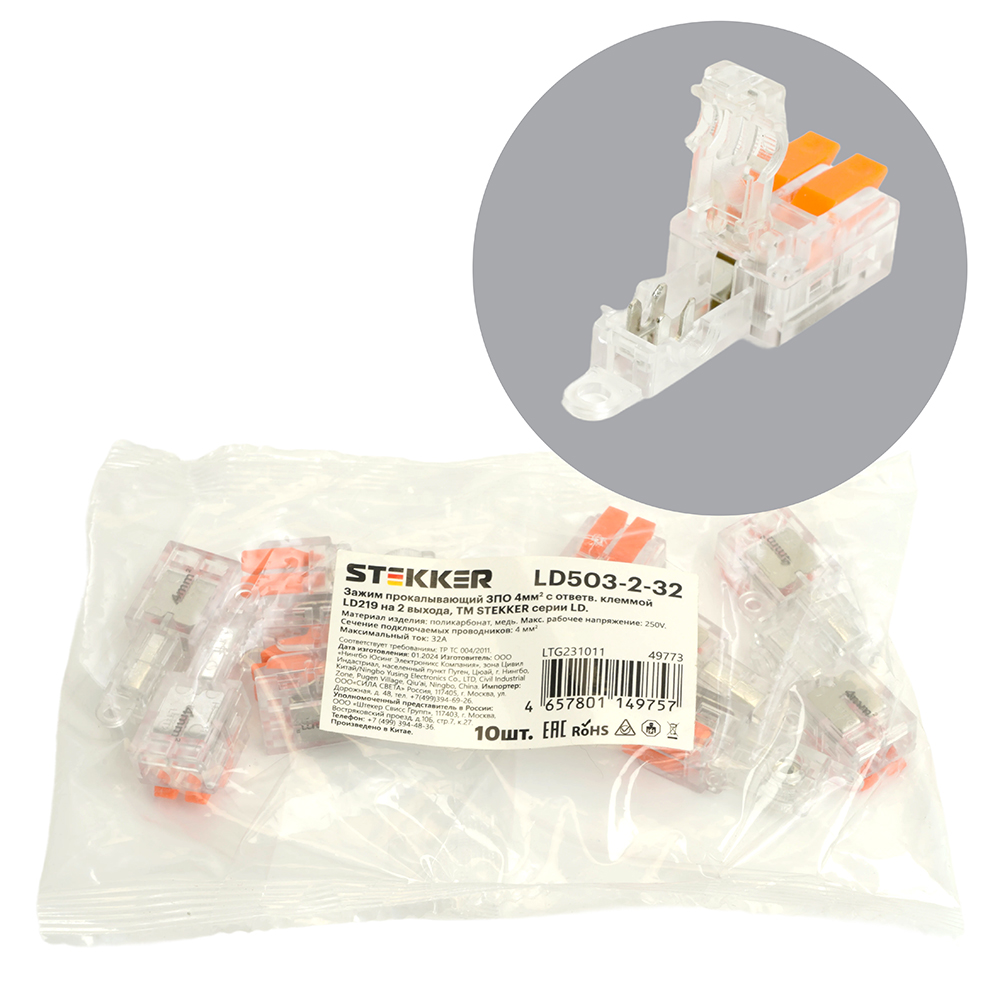 Зажим прокалывающий ответвительный 4 мм² c ответвительной клеммой LD219 на 2 выход, прозрачный/оранжевый (упаковка 10 шт) LD503-2-32 STEKKER доступен в интернет‑магазине ВольтМаркет в Орске. Покупая у нас, вы получаете дополнительные преимущества: