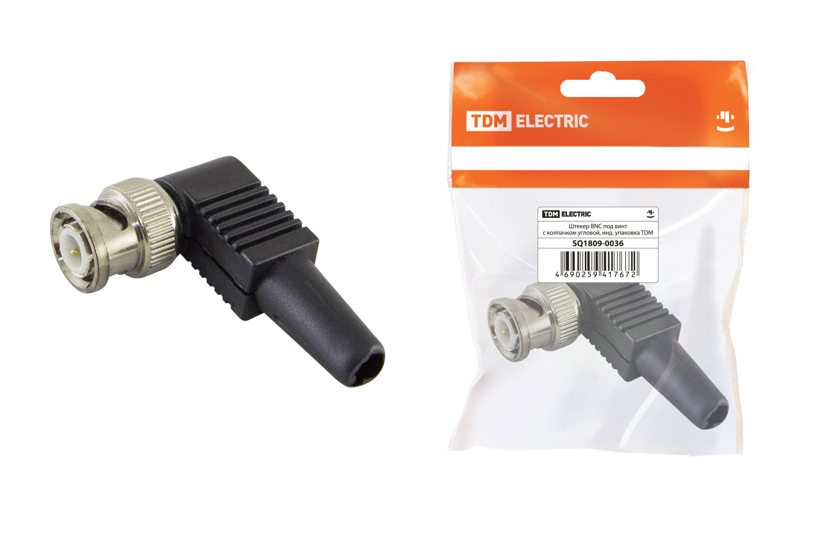 Штекер BNC под винт с колпачком угловой, инд. упаковка TDM в Орске